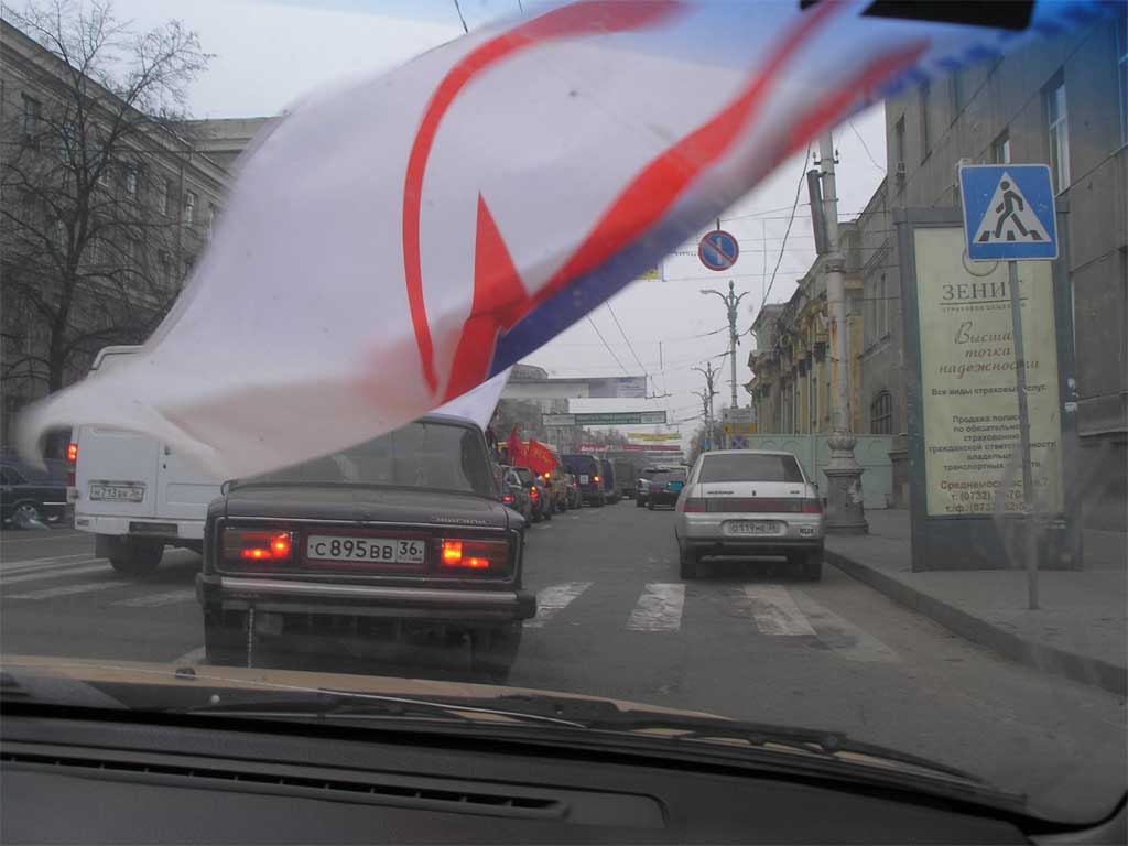 В полдень прошло пикетирование воронежского авиазавода. Проходная предприятия, возле которой должна была проходить акция протеста, была оцеплена милицией. Два офицера милиции пытались спровоцировать драку с представителями партии "Родина", но инцидент был остановлен участниками пикета.