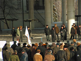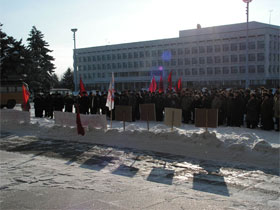 В митинге приняли участие члены "Союза офицеров", ветераны училища, Объединенного гражданского фронта, молодежного движения "Оборона", КПРФ.