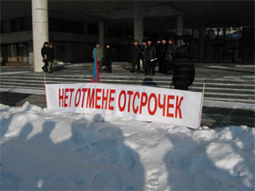 "НЕТ" отмене отсрочек" - под таким лозунгом в этот же день вышли на площадь члены молодежного движения "ОБОРОНА".