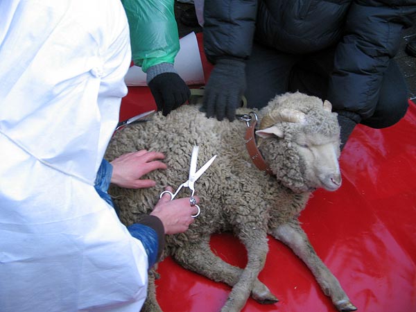 Акция началась со значительным опозданием, так как баран и художники застряли в пробке, тем не менее журналисты и большое количество случайных прохожих, привлеченных предстоящим перформансом, терпеливо ожидали начала.