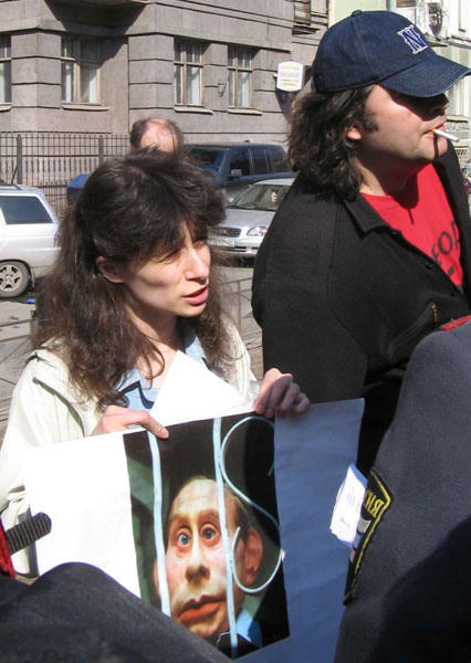 К консульству США подъехали шесть автобусов с ОМОНом. Несмотря на то, что организатор пикета Диля Райнина продемонстрировала уведомление, поступившее в установленный законом (ФЗ №3 РФ) срок в администрацию, ее задержали и увезли в 78 отделение милиции.