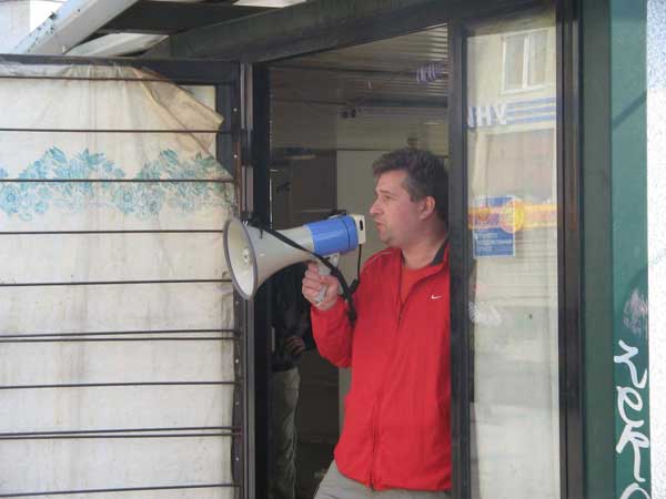Наблюдать за демонтажем павильона съехалась почти вся администрация района. Алексеев, руководитель ООО "Воланд" и владелец киоска, вылил двадцатилитровую канистру с бензином и встал в дверях с мегафоном и зажигалкой наготове. Местонахождение торговой точки на одной из главных магистралей района не устраивало администрацию. Сергей требовал предоставить альтернативное место для торговли.