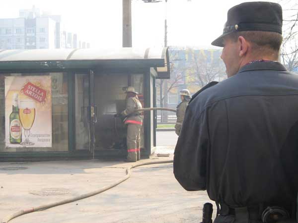 "Требую альтернативное торговое место", - кричал Алексеев в мегафон, стоя на пороге залитого бензином киоска. - "Вы уволили мою жену, у меня отняли бизнес. Это моя частная собственность, делаю с ней, что хочу. Четыре павильона вы уже продали на металлолом, этот вам не достанется!" Милиционер пошел к нему, отказавшись остановиться под угрозой поджога. Он зашел внутрь и попытался скрутить поджигателя. В этот момент полыхнуло, тесный павильон заполнился пламенем и густым черным дымом. Люди чудом выскочили наружу. Поджигатель был арестован, ларек потушен и погружен в грузовик.