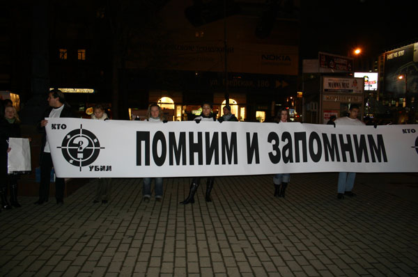 Представители молодежного движения "Смена" подняли растяжки "Кто убил? Помним и запомним". Они также провели презентацию Интернет-сайта "Кто убил?", который создан для того, чтобы восстановить максимально полно и объективно картину убийства, а также в как можно скорее обнаружить его исполнителей и заказчиков. Сайт ставит своей целью помощь следствию: его основатели боятся, что оно может зайти в тупик, как в случаях ряда других громких убийств.
