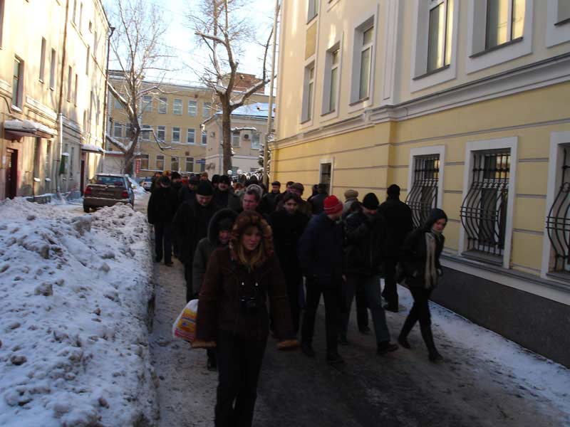 Спустя некоторое время митингующие к зданию объединения административно-технических инспекций Москвы, блокировали вход в здание и потребовали переговоров с Ищенко руководителем этой службы. Но вместо него к митингующим вышел его заместитель Дронов и сказал "Ищенко нет на рабочем мести и разговаривать с ним можно, только записавшись на прием".