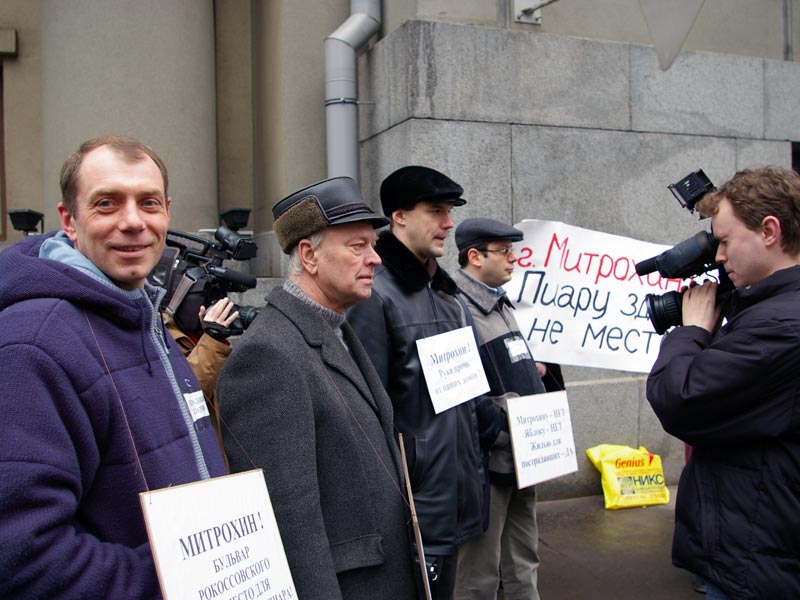 Следующая группа поддержки депутата численностью 20 человек уже не решилась повторять ошибок соратников и стояла молча, без плакатов, до появления виновника акции - Сергея Митрохина. Он вышел из подъезда Мосгордумы в 10 часов, помахал рукой товарищам по партии, чем вызвал аплодисменты и возгласы - "ура!" После чего народный избранник удалился, сказав: "У меня дела, я пошел". Интересно, что участники акции против Митрохина никак не отреагировали на появление депутата.