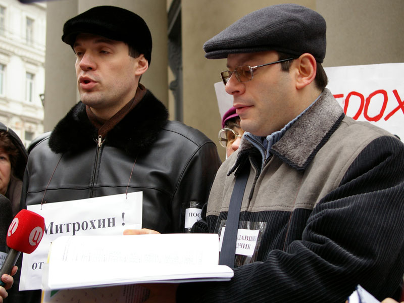 Сразу после начала пикета около Мосгордумы появились шесть представителей "Молодежного Яблока", которые начали скандировать: "Митрохин наш депутат!". Они были задержаны милицией и отправлены в местное ОВД.