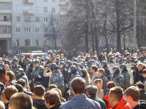 К 12:00 к центру города были стянуты сотрудники ОМОНа из порядка десяти регионов России, в том числе из Республики Коми, Республики Чувашия, Мордовии, Челябинской и Ульяновской областей и др. Все доступы к площади Горького, на которой должен был состояться марш, были заблокирована несколькими кордонами ОМОНа. С 11 утра в центре площади начали проводиться ремонтно-строительные работы.