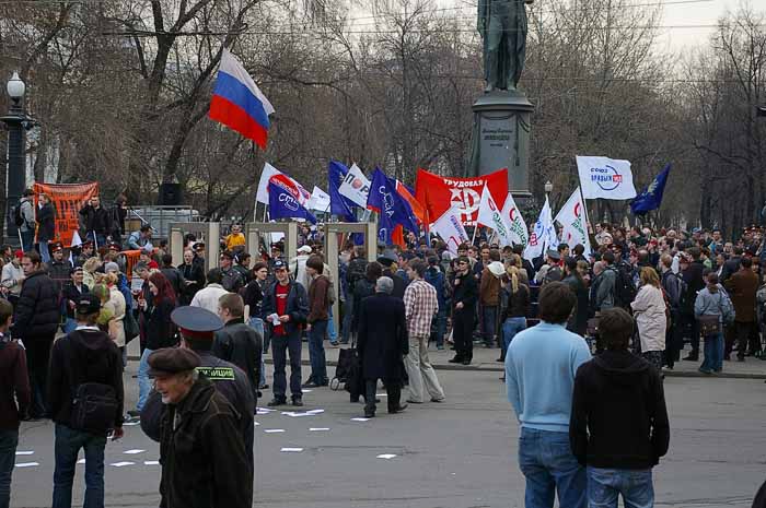 Среди участников митинга - ОГФ, "Смена", "Свободные радикалы", СПС, "Яблоко", "Трудовая Россия".