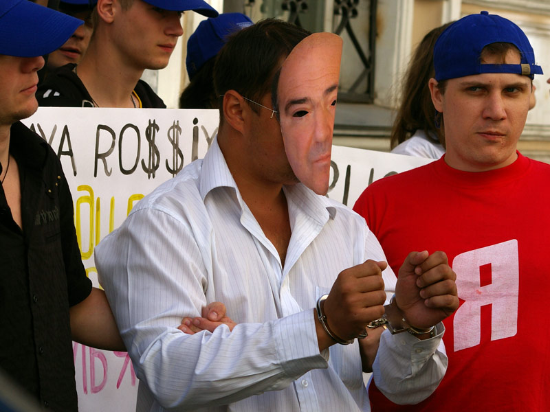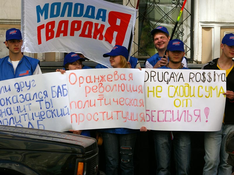 Участники акции, около 20 человек, устроили театрализованное представление "Если друг оказался БАБ или подарок для "Другой России". "Молодогвардеец" в маске Бориса Березовского передал "посылку из Лондона" с пачкой долларовых банкнот, бутылкой березового сока, банкой тушенки, ковриком туриста и дождевиком желтого цвета. По замыслу организаторов, именно этот набор должен пригодиться лидерам "Другой России" для поведения революции. Однако работники прокуратуры, роль которых также исполняли участники акции, пресекли попытку передачи "революционного набора". После этого на двери офисного здания был наклеен плакат "Логово предателей России", а собравшиеся начали скандировать: "Янки go home", "Другая Россия не сходи с ума от бессилия", "Россия – все! Другая - ничто!". Пикет закончился нестройным исполнением песни "Если друг оказался БАБ" на мотив знаменитой песни Владимира Высоцкого.