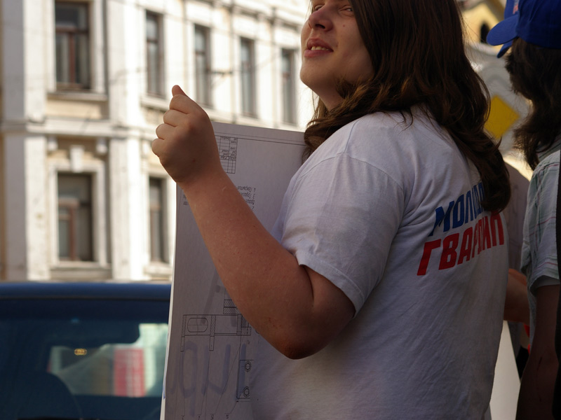 Как заявил один из участников акции Кирилл Щитов, цель акции – показать общественности и молодежи, на какие деньги существует "Другая Россия". В частности они основывались на интервью, которое дал Березовский газете "Financial Times", где он якобы заявил, что является спонсором «Другой России». На вопрос корреспондента: "Разве слова Березовского не дискредитируют "Другую Россию" в глазах общественности? Зная отношение к бывшему олигарху, можно предположить, что такое заявление принесет только вред?" Кирилл Щитов ответил: "Да, конечно". Однако потом он поправился и сказал, что таким образом "Березовский пытается опорочить российскую молодежь, которая принимает участие в акциях "Другой России" и не знает, что они устраиваются на деньги Березовского". Он также сказал, что в России не возможен вариант "Оранжевой революции", так как в стране наблюдается стабильная экономическая ситуация. В Грузии подобный сценарий был возможен благодаря "резкому экономическому спаду", а на Украине благодаря "усталости правительства Кучмы". На вопрос будут ли активисты МГЕР устраивать подобные акции протеста во время проведения "Марша несогласных" в Москве, Кирилл заявил, что "не будут, если акция будет согласована". О сегодняшнем "Марше несогласных" в Санкт-Петербурге он даже не слышал. Рядовые активисты не решились комментировать свое пребывание на акции, сославшись на то, что у них могут быть проблемы.