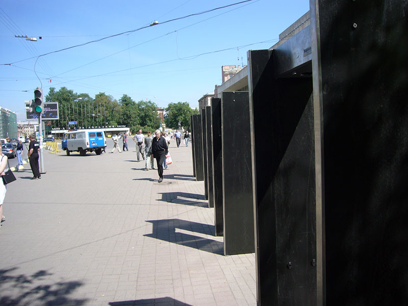 Под прикрытием забора на Парадной улице выстроились восемь автобусов, набитых ОМОНом. По средним подсчетам автобусы вмещают в себя около ста пятидесяти – двухсот милиционеров.