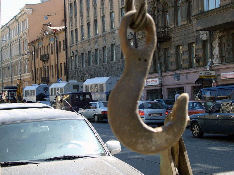 Эвакуатор ДПС убрал с площади у БКЗ "Октябрьский" все частные машины. Хозяева машин были возмущены тем, что их не предупредили заранее о том, что машины не должны находиться на площади. По их словам, машины ранее на этой площади никто не трогал.
