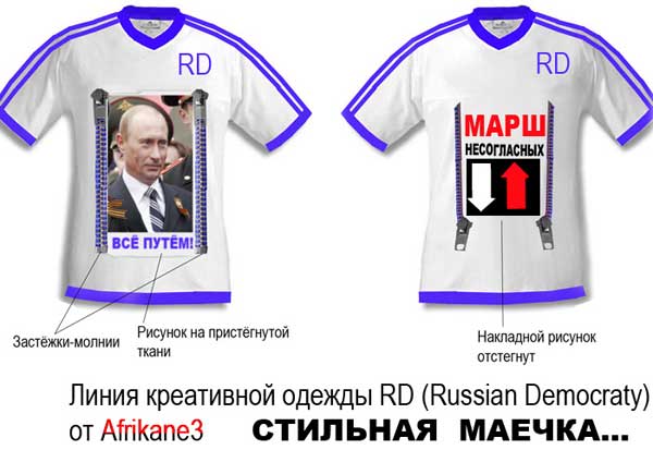 Наши бессменные еще с 80-х годов лидеры – "господа-демократы минувшего века", попросту не привыкли к такому "креативу". Они предпочитают "героически" сражаться с авторитарным режимом длиннющими заумными статьями на блеклых порталах Интернета, которые мало кто читает. Но им откровенно "слабО" вдохнуть жизнь в молодежную демократическую организацию, подобно украинским перед Майданом. "СлабО" привлечь на свою сторону юных пассионариев, "слабО" разрешить им полную свободу выражения, придумать соответствующую стилистику: например, организовав рок-концерт "Я-несогласный" или агитационный марафон через всю страну, единую для всех простую, но четкую символику – какую-нибудь показывающую наверх стрелку. Не приходит в голову предложить и запустить в производство, например, линию одежды "Русская демократия", отображающую всю стилистику "Маршей несогласных". Это могут быть, к примеру, футболки с накладными "картинками" и штаны с чехлами для раскладных древков флагов. Замаскированные под шарфы транспаранты или какие-нибудь раскладные каски...