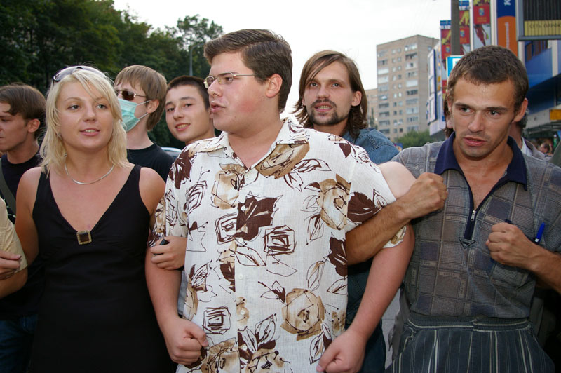 После этого участники акции колонной двинулись к метро, для того, чтобы исключить возможные провокации как со стороны милиции, так и со стороны службы безопасности компании "Дон-строй". Во время движения активисты и местные жители скандировали: "Россия без Путина! Москва без Лужкова!", "долой "Дон-строй"!", "долой уплотниловку!".