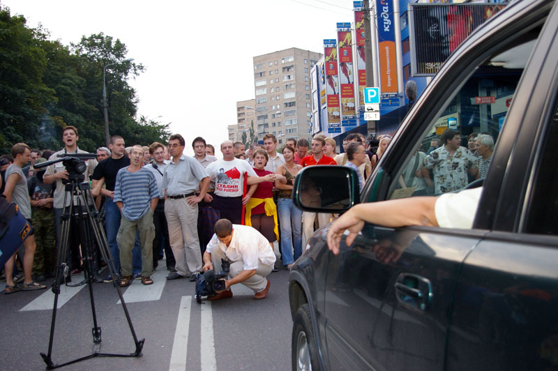 После сбора и небольшого митинга было принято решение перекрыть улицу Маршала Бирюзова. В результате около 150 человек, с лозунгами "Это наш город!", "Нет уплотнительной застройке!" перекрыли улицу. Улица была перекрыта в течение 20 минут. Стоит отметить, что милиция на это никак не отреагировала, а лишь перенаправляла транспорт на объездные пути. Однако вскоре подъехал автомобиль с сотрудниками милиции, которые были вооружены дубинками и щитами. После этого было принято решение вернуться к стройке.