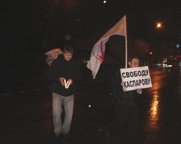 Напомним, с 26 ноября на Петровке будет проводиться серия одиночных пикетов в поддержку лидера ОГФ Гарри Каспарова. Пикеты будут проходить с 9.00 до 21.00 каждый день в течении всего срока ареста Каспарова.