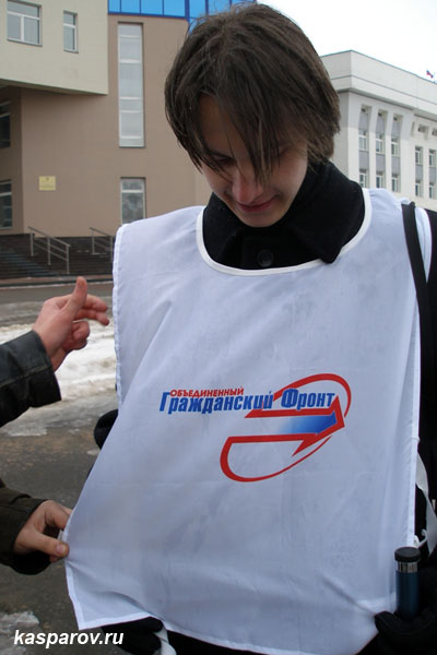 Как сообщил руководитель вологодского отделения ОГФ Иван Беляев, флаги ОГФ и РСДСМ через двадцать минут после начала акции пришлось свернуть - подъехала целая делегация чиновников, которые потребовали убрать символику на основании того, что она не была указана при согласовании мероприятия. Участники пикета свернули флаги, оставив жилеты ОГФ.