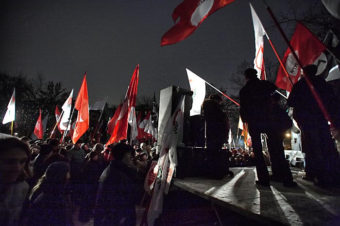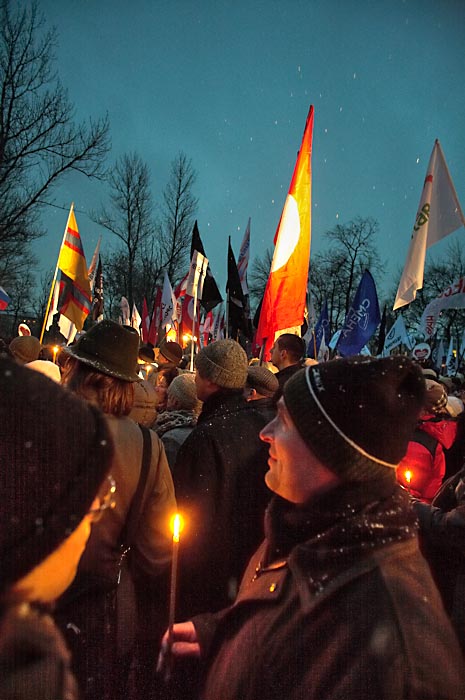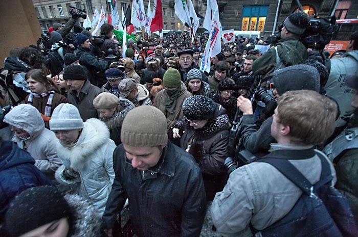 Выступили лидеры коалиции "Другая Россия" Гарри Каспаров и Эдуард Лимонов. Руководитель ОГФ Гарри Каспаров заявил, что 3 марта войдет в историю России. Он напомнил манифестантам, что "после позорного фарса "выборов" Медведев, Путин и Зубков пошли праздновать победу над Россией. "От нас зависит, - сказал он, - когда прекратится этот шабаш, который угрожает России. Свободные люди еще дойдут до Смольного и Кремля и именно их боятся путины, медведевы и матвиенки! Их страх выражается в толпах ОМОНа и десятках задержанных в Москве".