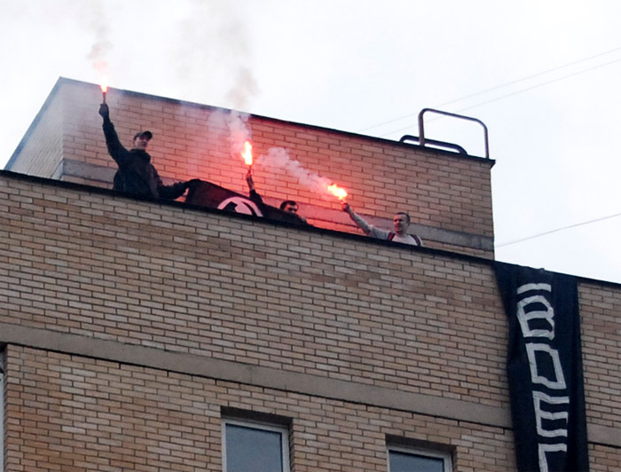 Напомним Николай Авдюшенков, Антон Лукин и Дмитрий Константинов были задержаны после того как решили поддержать осужденных соратников по "Таганскому делу". Нацболы развернули две вертикальные растяжки с надписью "Свободу нацболам", зажгли фаера, раскидали листовки. Пришедшие поддержать активистов скандировали "Свободу политзаключенным" и "Россия без тюрем".