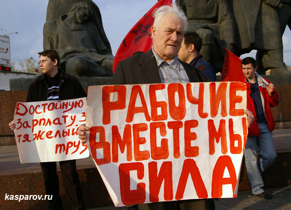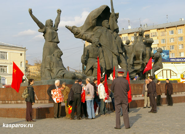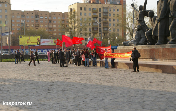 Сотрудники милиции очистили площадь от прохожих и участники митинга развернули флаги своих организаций: КПРФ, СКМ, РРП. Один из участников акции, лидер АКМ Сергей Удальцов, рассказал, что "основная тема митинга — выразить солидарность рабочим Севороуральска, которые бастовали в течении 10 дней и на данный момент начались переговоры между ними и администрации предприятие "Русский алюминий". Он напомнил, что и АКМ и нацболы проводили акцию в поддержку рабочих ранее. По его словам, рабочие нуждаются в поддержке, когда они вступили в активную фазу переговоров.