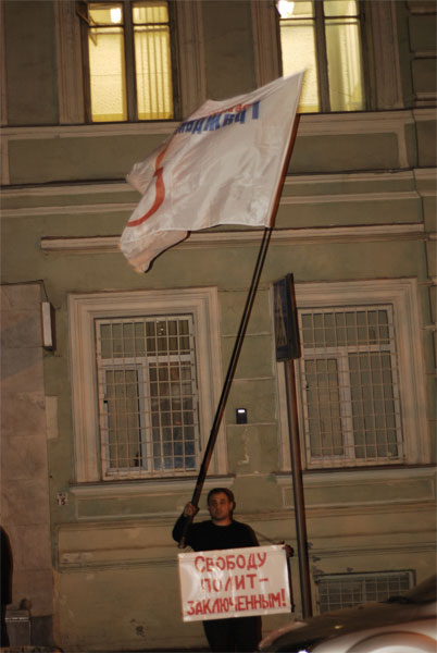 По его словам, из 15 человек, которые провели ночь в ОВД, внутри остались пятеро. Они ожидают предоставления им копий протоколов задержания. Всех задержанных обязали 15 апреля явиться в 370 участок Тверского суда Москвы. Их обвиняют в нарушении правил пикетирования (20.2 КоАП) и неповиновении милиции (19.3 КоАП), по последней статье им может грозить до 15 суток ареста.
