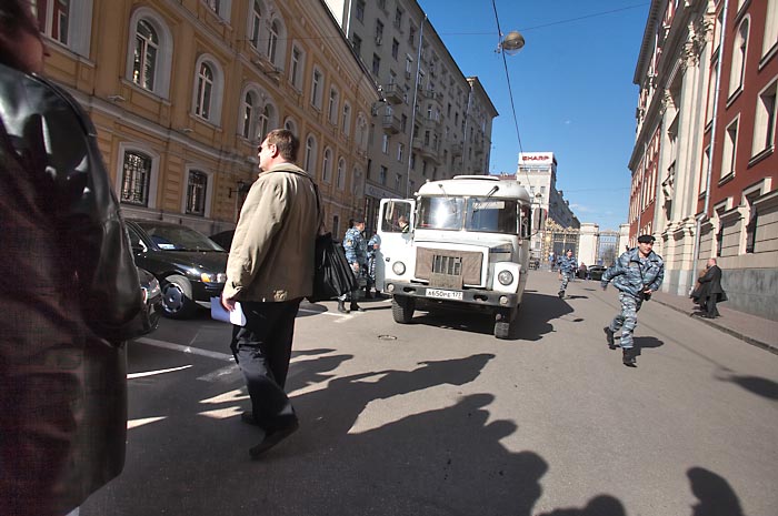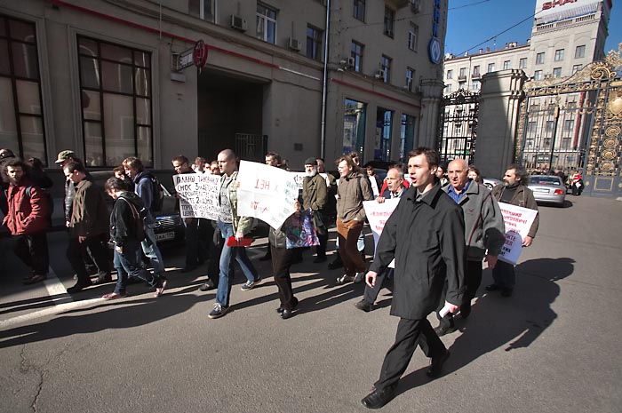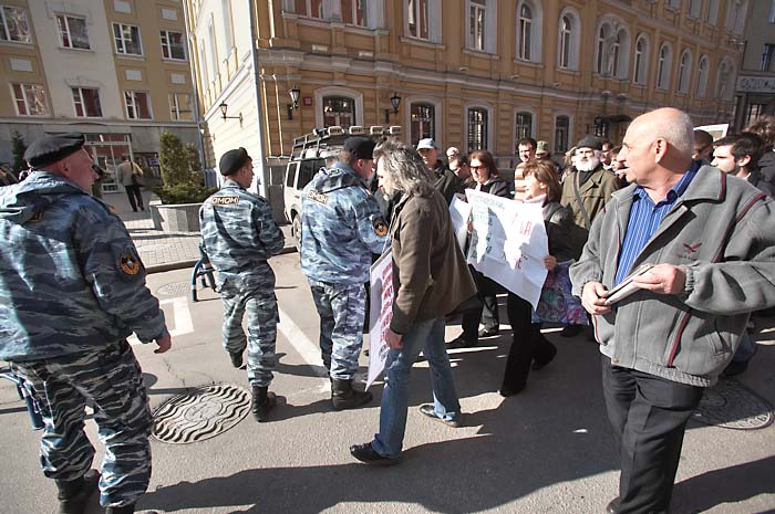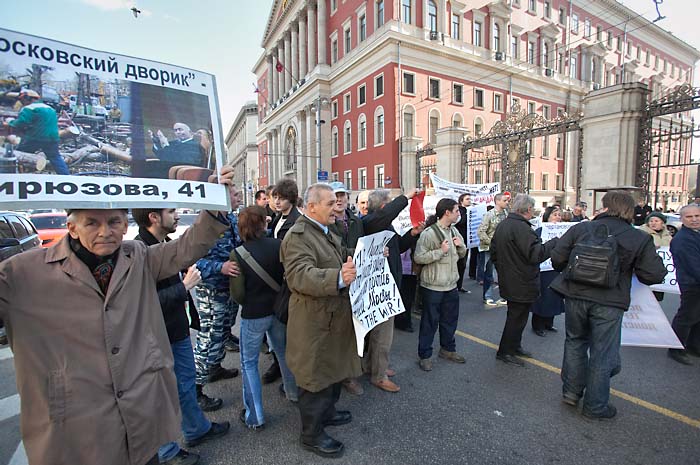 Манифестанты пытались вручить сотрудникам приемной петицию к мэру Москвы Юрию Лужкову с требованием прекратить в столице незаконное уплотнительное строительство. Около 50 участников митинга перекрыли Тверскую с лозунгами "Выйди на улицу, верни себе город!", "Нет точечной застройке". А затем они двинулись к зданию мэрии с тем, чтобы передать мэру Москвы Юрию Лужкову свое заявление с требованием прекратить точечное строительство. Однако попасть за ворота около здания правительства Москвы удалось только части участников акции. Часть же осталась на Тверской улице, так как подъехавший ОМОН успел закрыть ворота.