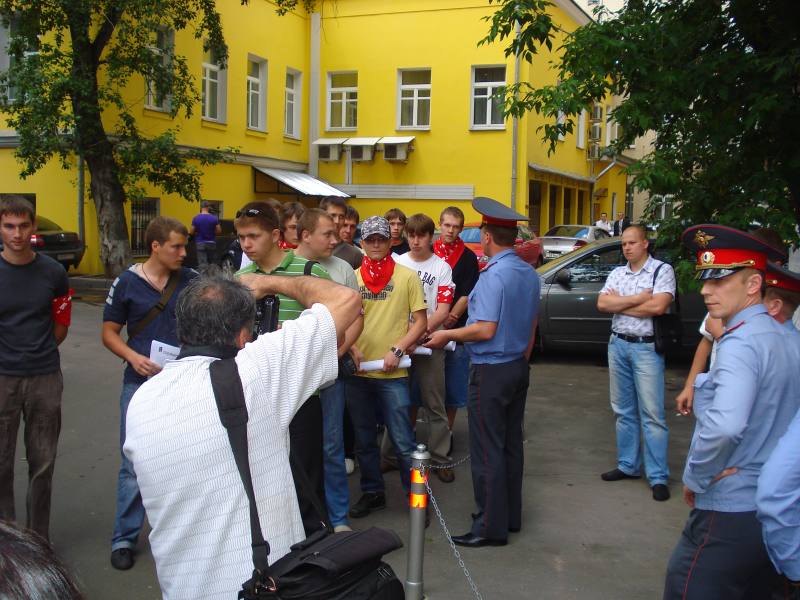 Лидер группы "молодогвардейцев" Дмитрий Бирюков заявил, что они обращались к пресс-службе организаторов пресс-конференции с просьбой аккредитовать представителя МГЕР на пресс-конференцию, но им было отказано. В свою очередь представитель пресс-службы заявил, что такого обращения не было.