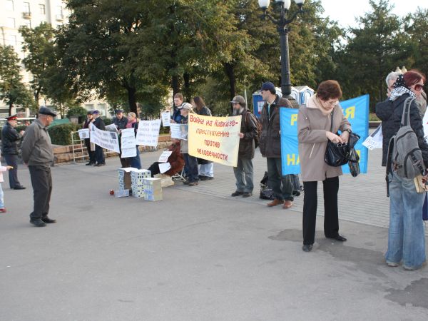 Также один из плакатов сообщал, что многие их жертв терактов 1999 года в Москве, Волгодонске и Буйнакске до сих пор не опознаны, поскольку чиновники заявляют, что нет денег на генетическую экспертизу. Кроме того, участники акции утверждали, что вина жителей Чечни во взрывах домов 1999 года не доказана.