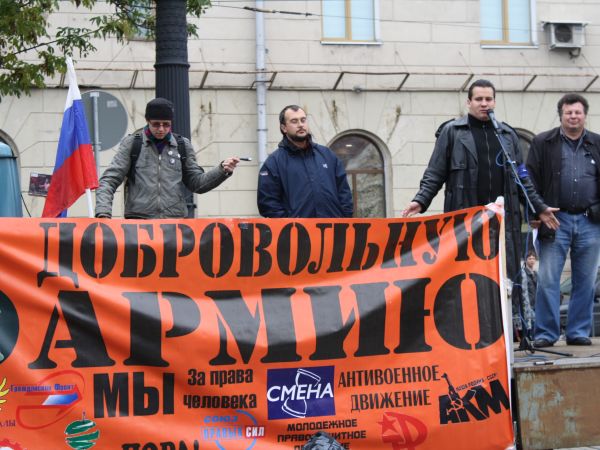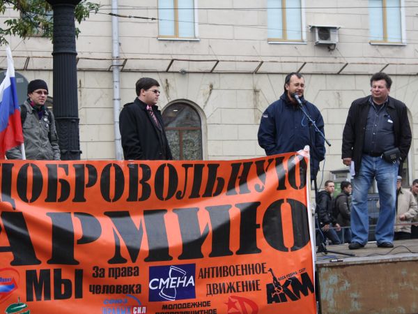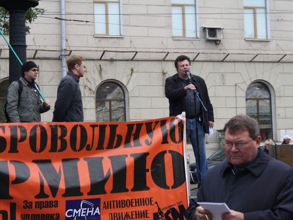 Как сообщил корреспондент Собкор®ru с места событий, митинг открыл лидер Антивоенного клубы Михаил Кригер. Он высказал мнение, что профессиональная армия имеет ряд преимуществ перед призывной. В частности, по его словам, невозможно обучить военной профессии человека, который этого не хочет. Молодым людям совершенно не нужно казарменное унижение, которое сейчас происходит в армии, сказал он.