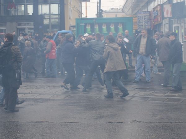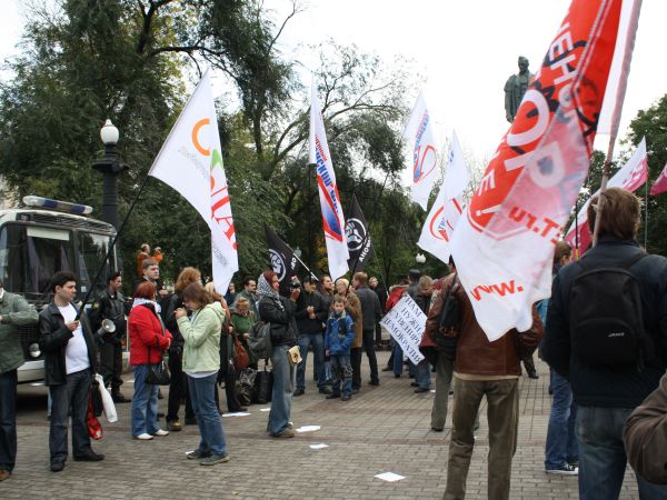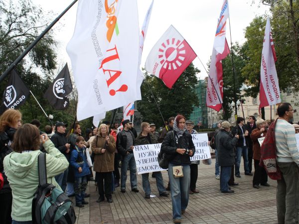 Ранее в самом начале акции сотрудники милиции задержали около шести провокаторов из прокремлевского движения "Россия молодая", которые зажгли фаера и разбросали листовки с надписью "Не соси у грантоеда". Провокаторы также обвинили участников митинга в предательстве. Спустя некоторое время на акцию пришли около десяти членов движения "Наши" с разноцветными флагами. Сотрудники правоохранительных органов выпроводили их пределы оцепленной территории.