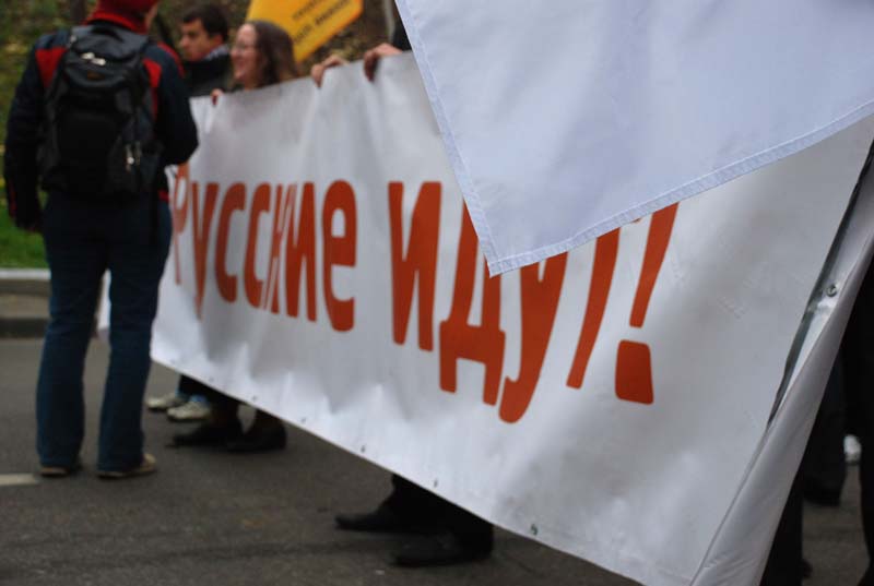 Шествие прошло от дома №23а на набережной Тараса Шевченко до гостиницы "Украина". Колонна разделилась на четыре-пять частей, каждая из которых представляла конкретное движение и скандировала свои лозунги. По ходу движения кто-то громко выкрикивал: "Слава России!", "Русской земле — русский порядок", "Россия — для русских", а кто-то пел православные песнопения. В колоннах шли барабанщики. Замыкали шествие молодые люди в черных масках, назвавшие себя активистами движения Straight edge. Они держали растяжки: "Держи кровь чистой", "Нет наркотикам, нет иммиграции", "За Русь" и скандировали: "Мы будущее, мы альтернатива", "Спорт, здоровье", "Смерть системе, смерть капитализму", "Слава русской культуре".