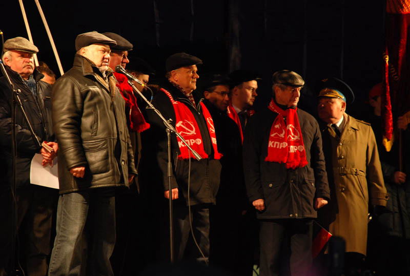 Выступавшие на митинге-концерте первые секретари региональных отделений КПРФ поздравили всех собравшихся с праздником. Лидер КПРФ Геннадий Заганов в своем выступлении, которое затронуло проблемы финансового кризиса, посоветовал "капиталистам внимательно читать "Капитал" Маркса".