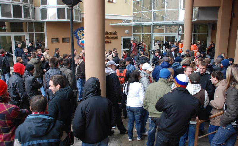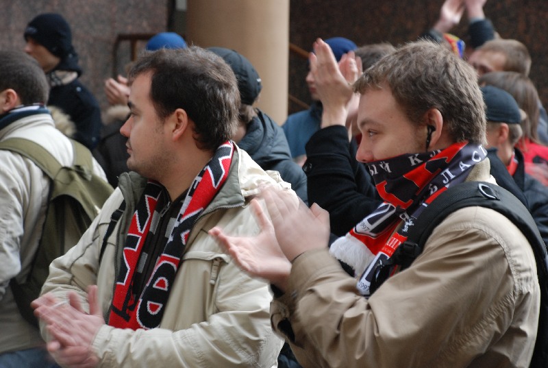 Несмотря на то, что акция была организована Всероссийским объединением болельщиков (ВОБ), собравшимся запретили скандировать какие либо лозунги, а около здания дежурили сотрудники правоохранительных органов, и было припарковано несколько "Уралов" с ОМОНом. По словам самих болельщиков, они собрались около здания РФС, чтобы попросить помощи в сложившейся ситуации, а также привлечь общественное внимание к "уничтожению клуба". Между тем милицией было задержано около 20 фанатов.