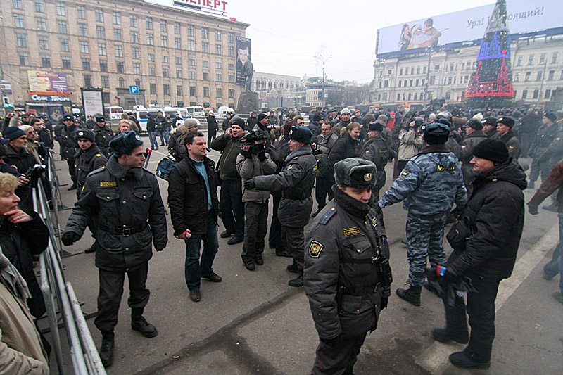 "Марш несогласных" в Москве начался в начале второго. К памятнику Пушкину вышли около двадцати пожилых военных, среди них – адмирал Владимир Березин. К тому моменту на площади уже скопилось около 50 сотрудников ОМОНа, мимо Пушкина туда-сюда носились отряды солдат внутренних войск со шлемами в руках и противогазами в сумках. Стороннему наблюдателю могло показаться, что столица готовится к войне. Но если это была и война, то война с собственным народом – по-другому никак не назовешь.