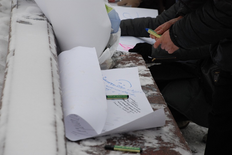 Организаторы мероприятия принесли на площадь огромные листы ватмана и цветные маркеры и попросили всех собравшихся нарисовать или написать на них свои пожелания для Израиля. Также была проведена арт-акция "Улыбнись Израилю": во время мероприятия фотограф снимал улыбающихся участников пикета, из этих фотографий впоследствии обещали составить фотоколлаж. По словам организаторов акции, и коллажи, и листы с пожеланиями будут направлены в Израиль для моральной поддержки граждан этой страны.