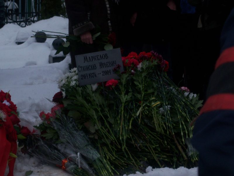 Попращаться с Маркеловым на Останскинское кладбище пришли по разным данным от 150 до 300 человек: родственники и близкие покойного, коллеги по адвокатуре, правозащитники, активисты левых и оппозиционных либеральных организаций, анархисты.