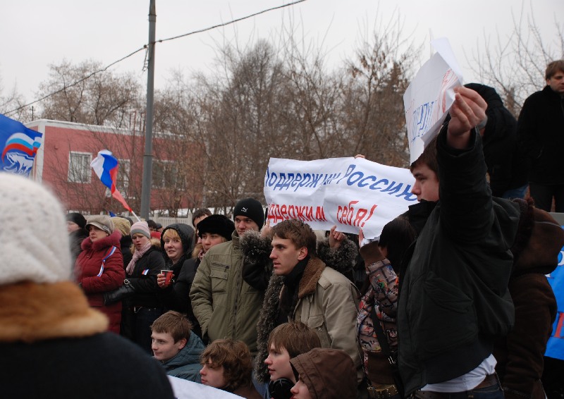 Митинг "Единой России", по разным данным собрал от восьмисот до тысячи человек. Между тем около трети участников не дождались начала митинга и ушли, заявив, что им холодно.