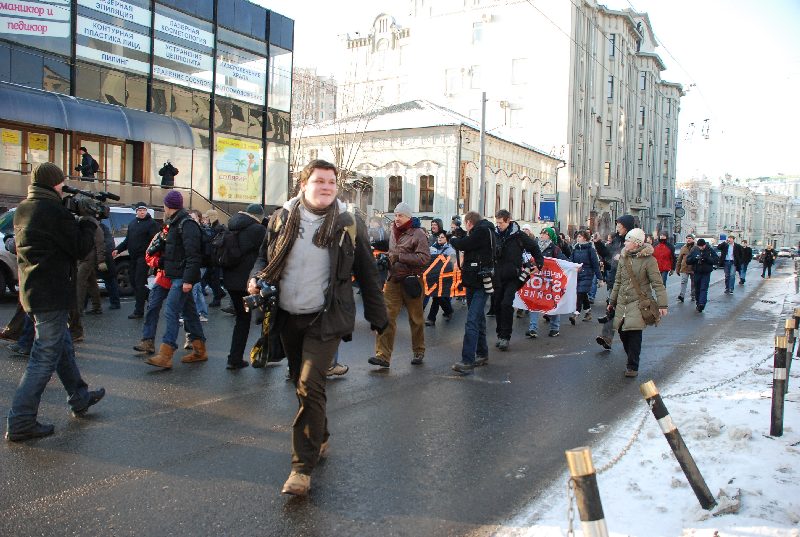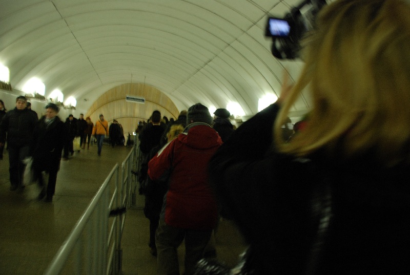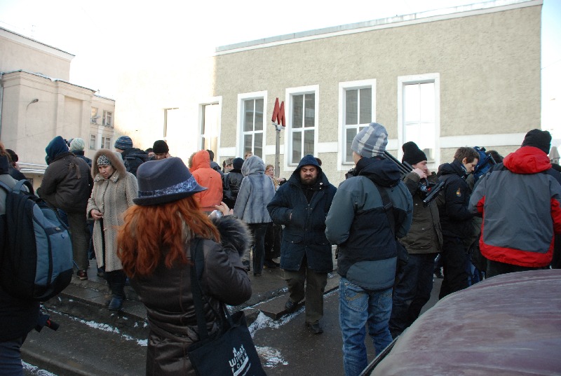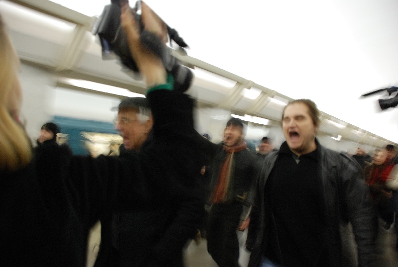 Перед "Маршем" активисты собрались на станции метро "Улица 1905 года", а затем провели своеобразное шествие прямо в метро. Они скандировали: "Нам нужна Другая Россия!", "Путина под суд!", "Долой власть чекистов" и другие.