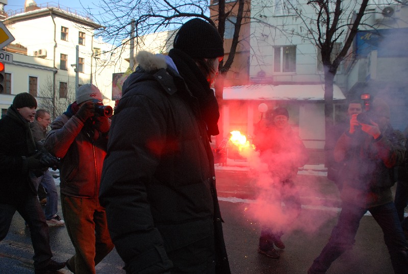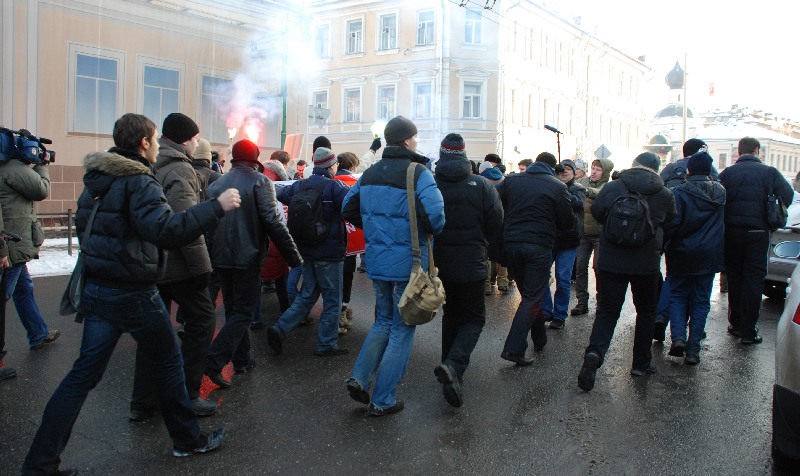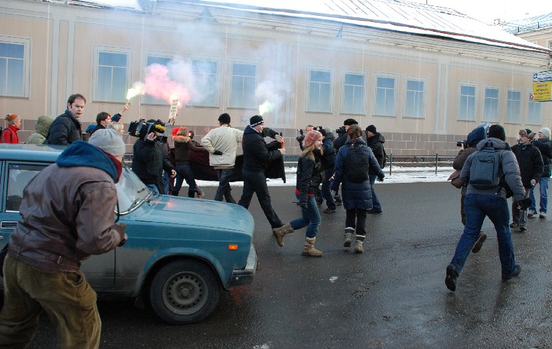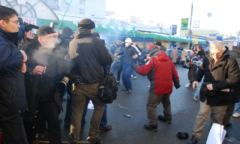 Нападение удалось отбить, однако несколько "несогласных" были задержаны: фотокорреспондент Алескей Касьян, активист ОГФ Владимир Ионов, депутат муниципального собрания района Отрадное Владимир Вельмакин (отпущен сразу после задержания), координатор "Обороны" Эдуард Глезин, активист "Смены" Станислав Яковлев, активисты ОГФ Ирина Набатова и Ида Милославова. Они доставлены в ОВД "Якиманка".