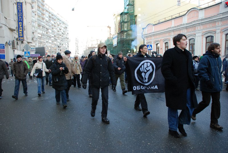 Тем не менее шествие продолжилось. Активисты, скандируя лозунги, прошли с растяжкой "Марш несогласных" до Садового кольца и разошлись. Милиция приехать не успела. Позднее у станции метро "Добрынинская" были задержаны трое активистов ОГФ: Алексей Казаков, у которого после нападения был сломан нос, Романа Удота и еще одного, имя которого пока установить не удалось. Также был задержан Роман Беккер, который пытался провести врачей к Казакову и задержанному случайному прохожему, у которог стало плохо с сердцем.