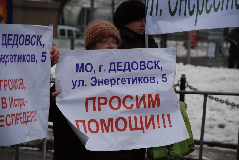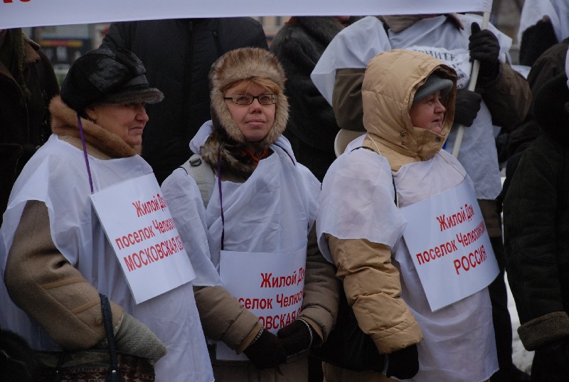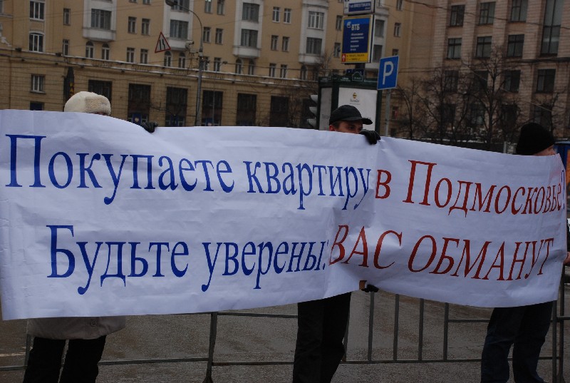 Жители города Пушкина, поселка Челюскинский Пушкинского района, Юбилейного, Балашихи, Реутова других вышли на улицу из-за того, что уже несколько лет не могут заселиться в купленные квартиры. Собравшиеся скандировали: "Верните наши квартиры", "Громов, уйди", "Серегин, уйди", "Пантилеев, уйди". Собравшиеся также освистывали чиновников, по вине которых, они не могут получить купленные квартиры.