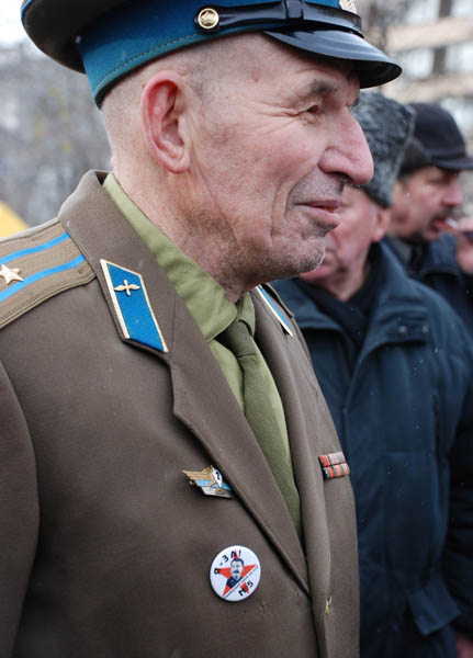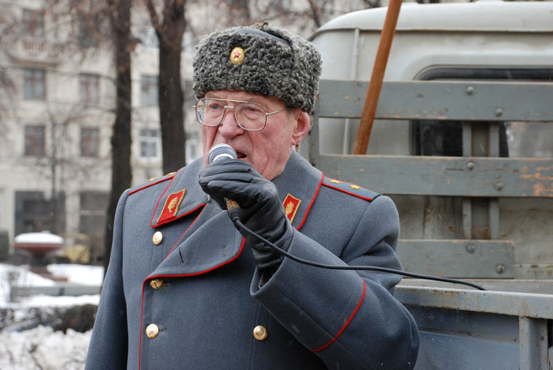 Выступавший вслед за ним ветеран войны в Афганистане, капитан 1-го ранга Борис Еременко обвинил президента Дмитрия Медведева, председателя правительства Владимира Путина и мэра Москвы Юрия Лужкова в том, что они "планомерно уничтожают Россию". "Страна лежит в руинах, образование, здравоохранение и экономика разрушены, особенно обидно за армию", - сказал офицер.