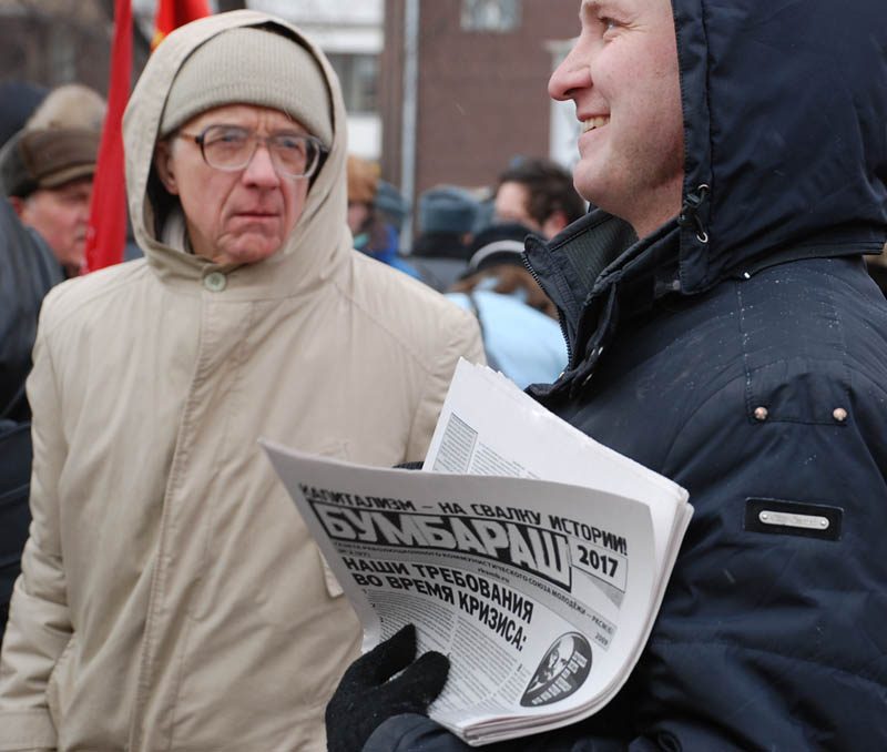 "Путин и Медведев довели страну до разорения. И вместо того, чтобы во время кризиса помогать народу, власть спасает олигархов", - заявил на митинге член движения "Левый фронт" Константин Косякин. По его мнению, страна сидит на "нефтяной игле", при том, что "народ хочет работать, а заводы разрушены". Косякин назвал нынешнюю власть "семейственным спрутом, который сидит у нас на шее, и которого надо скинуть".