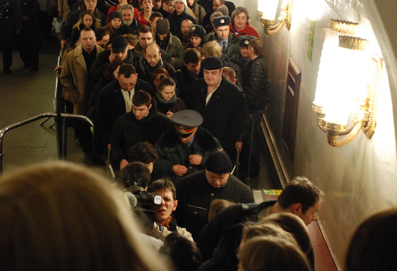 Рядом с выходом из станции метро "Проспект Мира" перед началом шествия были задержаны несколько человек, в том числе лидер московского отделения ОГФ Лолита Цария. Также задержали несколько журналистов - корреспонденты Газеты.Ru, "Коммерсанта", ТВЦ и двое сотрудников Associated Press. На станции метро "Белорусская" были задержаны активист "Обороны" Роман Удот и его девушка.