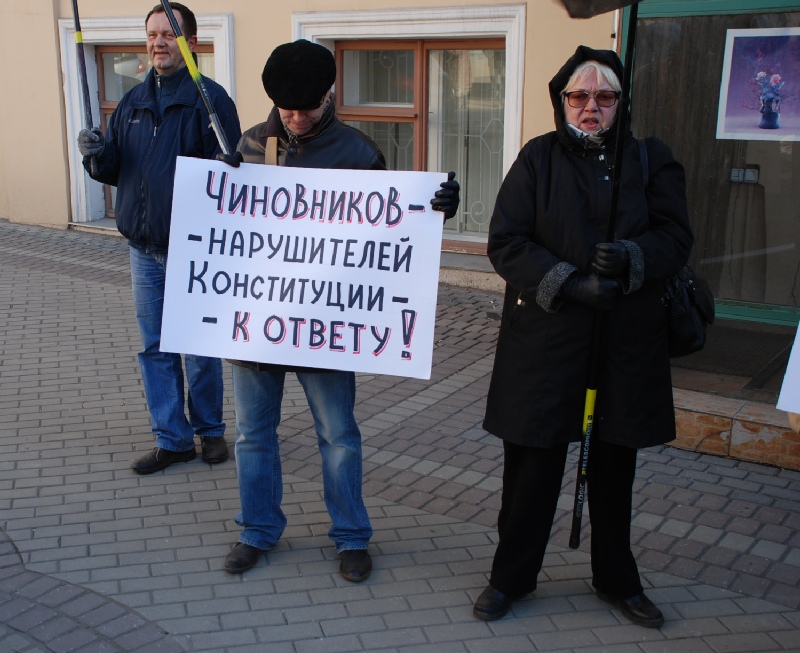 В пикете приняло участии более 15 человек. Участники акции скадировали: "Мы вас научим Конституцию любить!", "Чиновник, соблюдай закон!" и "Позор префекту Рабер!"