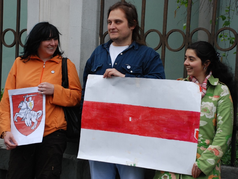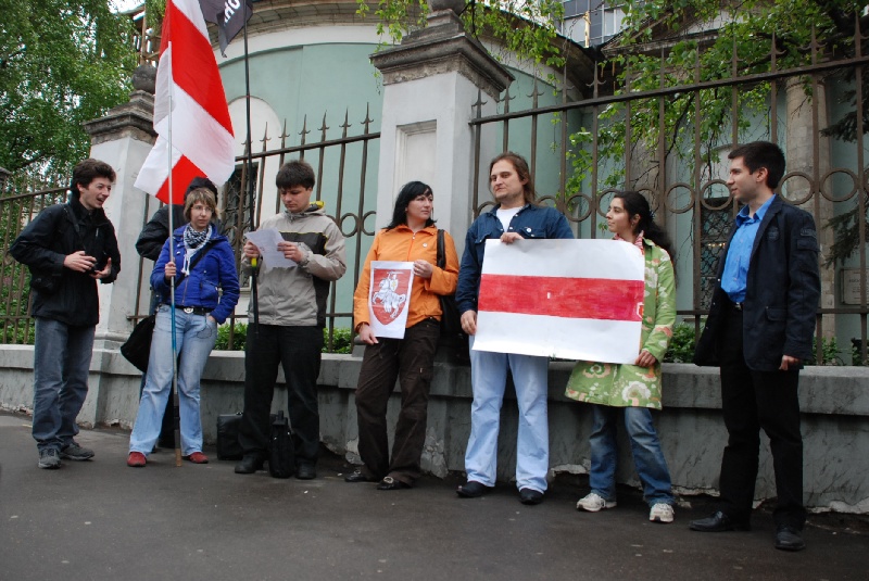 В Москве 14 мая напротив посольства Белоруссии движение "Оборона" провело пикет солидарности с политзаключенными этой страны. Пикет был приурочен к годовщине возвращения в Белоруссию советской символики, сообщает корреспондент Каспаров.Ru с места событий.