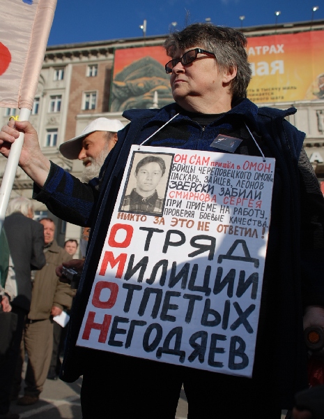 В ряды российской милиции идут служить неудачники с желанием самоутверждаться за счет людей. Такое заявление 19 мая сделали участники митинга за реформу милиции и против милицейского произвола, который прошел на Триумфальной площади. Об этом с места событий сообщает корреспондент Каспаров.Ru.