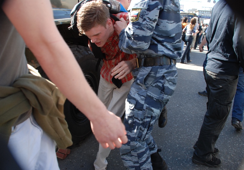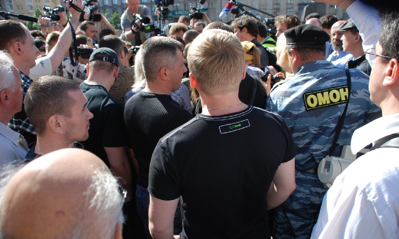 В Москве 31 мая ОМОН разогнал несанкционированный митинг "Россия против Путина". Задержаны более 30 человек. Среди них организатор митинга Сергей Аксенов, лидер нацболов Эдуард Лимонов и член политсовета московского отделения "Солидарности" Константин Янкаускас. Об этом с места событий передает корреспондент Каспаров.Ru.