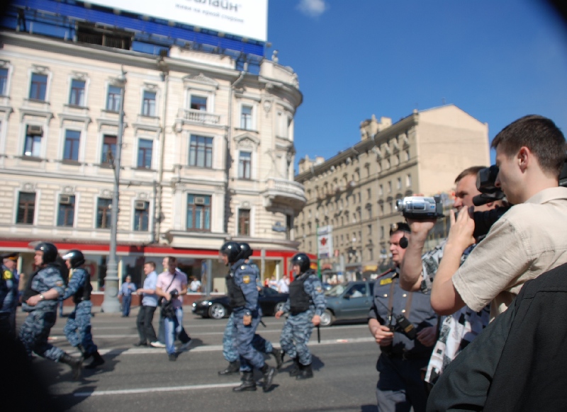 На акции присутствовали почти 200 журналистов, которые находились в плотном кольце сотрудников милиции, сообщает Интерфакс.